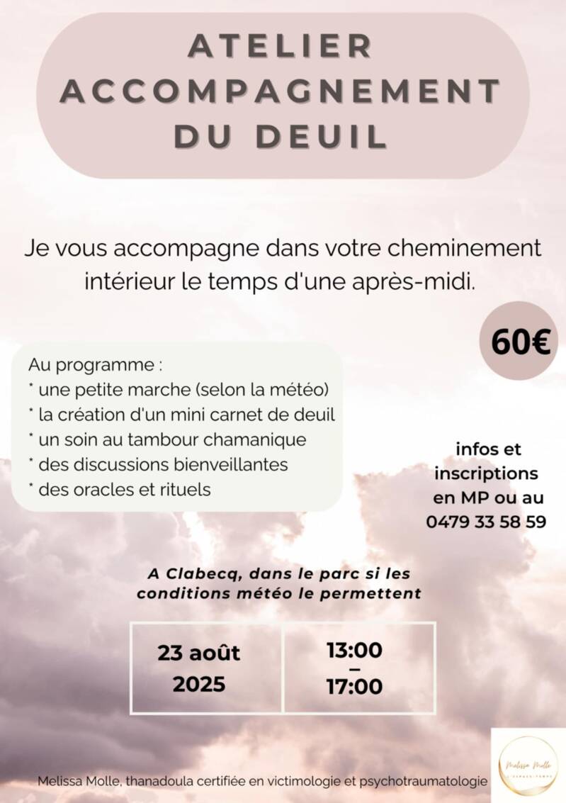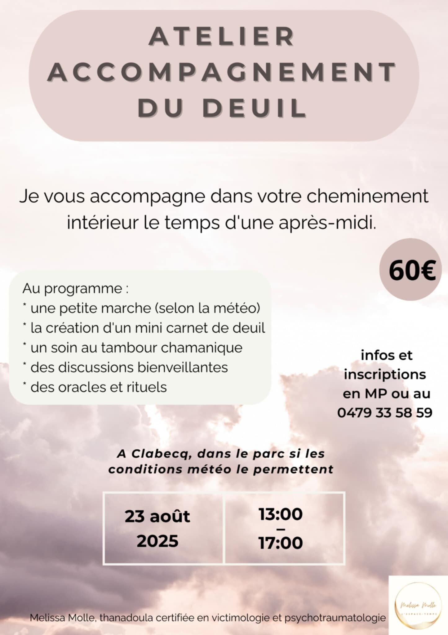Je vous proposerai également une méditation ou introspection, un voyage sonore ou un soin reiki en groupe, un soin au tambour chamanique ainsi que des petits rituels remplis de douceur. Des oracles sur les thèmes du deuil et des défunts seront également proposés.
